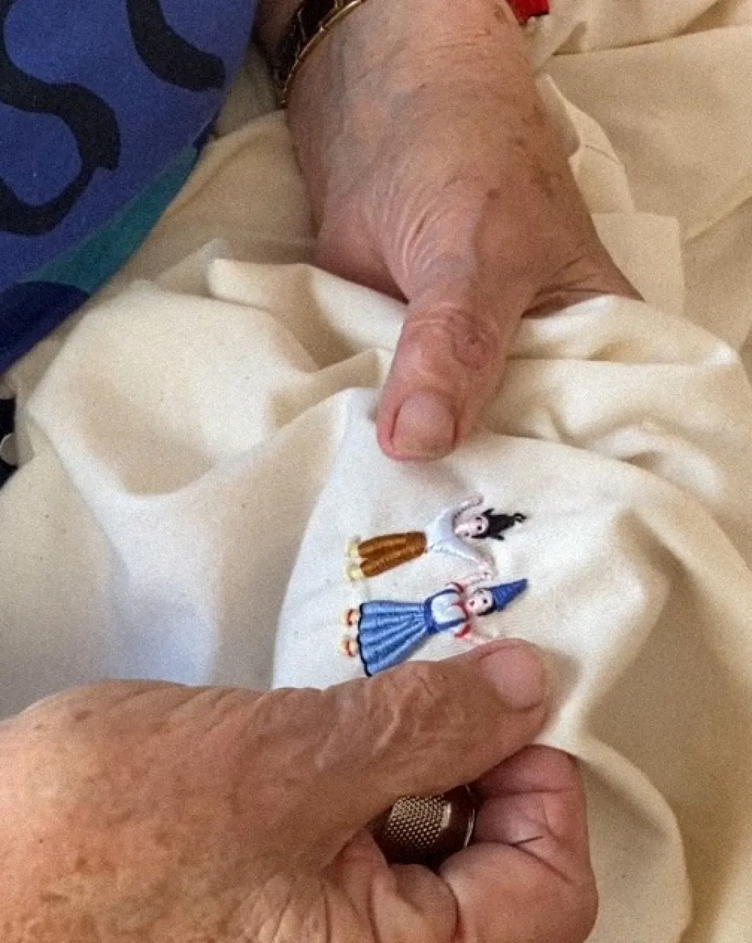 (FABRIC, THREAD, NEEDLE, THIMBLE, FINGERTIP AND TOTBAG)