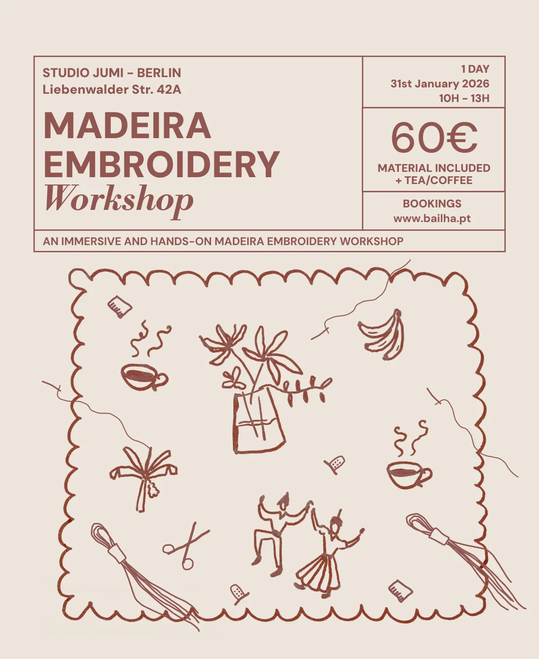 Workshop de Bordado Madeira em Berlim – Borda a tua Totebag – 31.01.2026