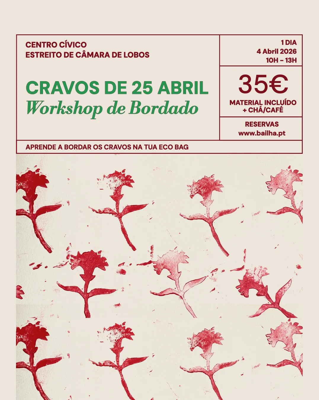 Workshop de Bordado Madeira – Borda os Cravos de 25 de Abril